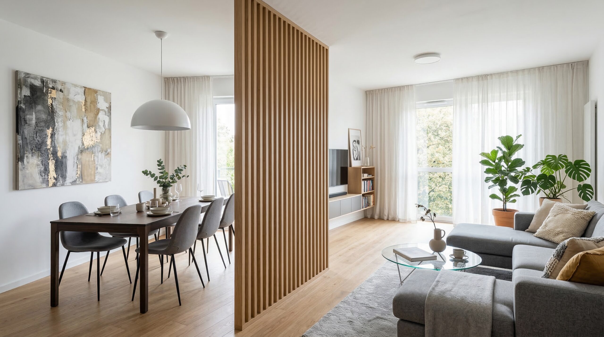 Trong những căn hộ hiện đại, vách ngăn nội thất giúp phân chia không gian một cách linh hoạt mà không làm mất đi sự thông thoáng.